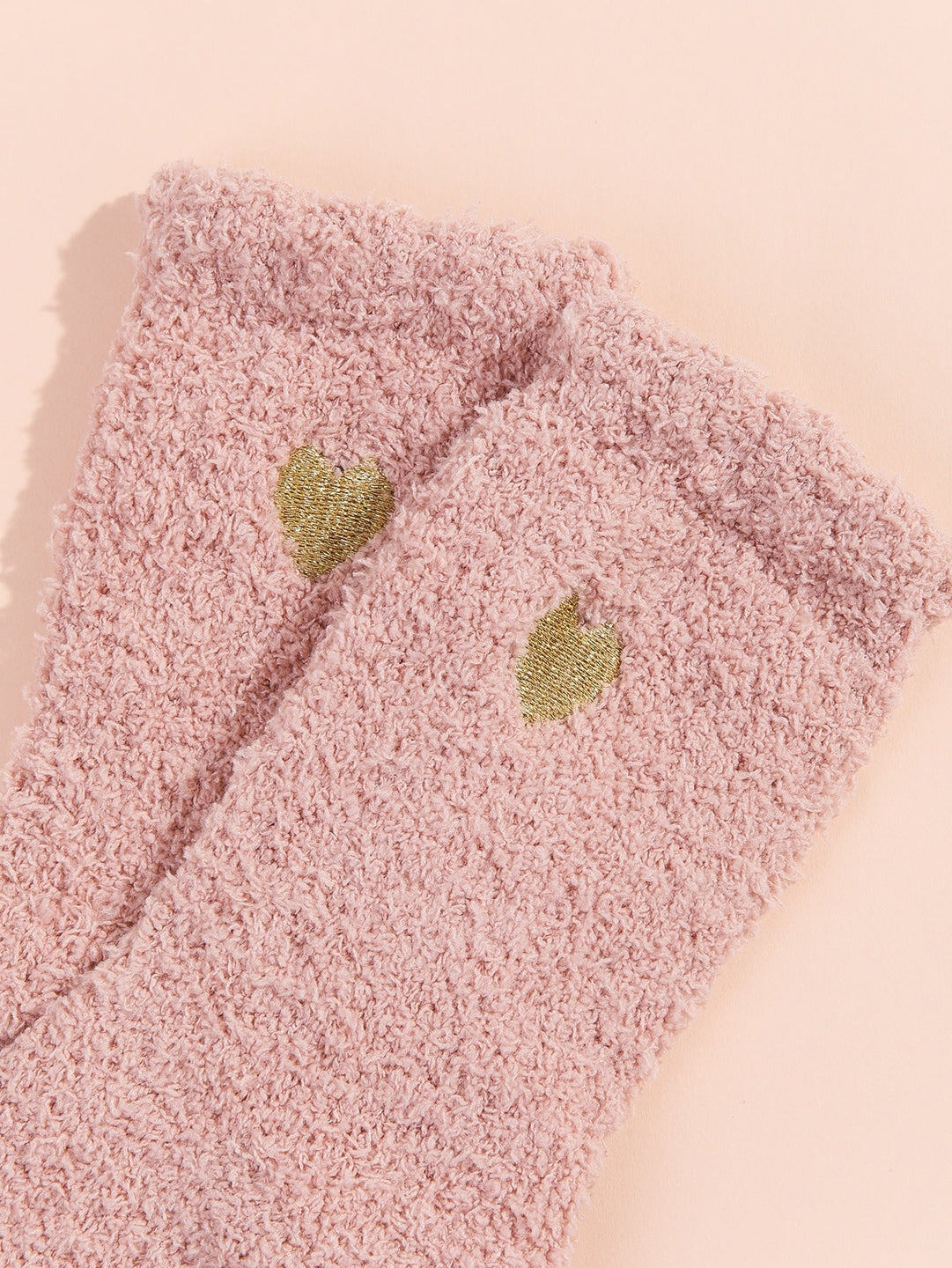 Snuggle with a pair of Heart Fuzzy Socks. Incredibly soft and super comfy. Perfect way to keep warm your loved ones!